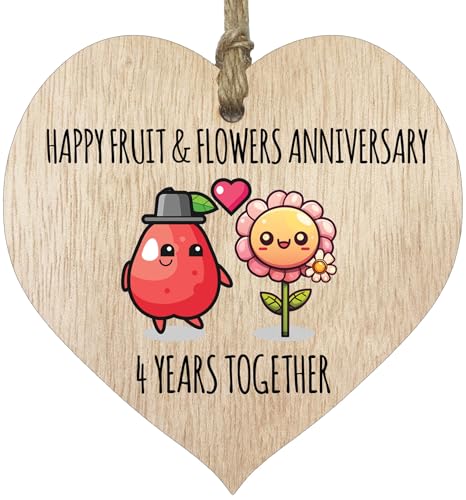 4th Wedding Anniversary Plaque Gift for Husband Wife - 4 Years Together - Happy Linen Anniversary Wooden Heart for Women Men Partner, Light Wood Sign Keepsake Gifts