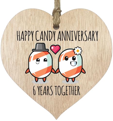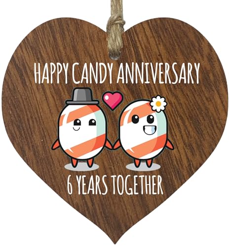 6th Wedding Anniversary Plaque Gift for Husband Wife - 6 Years Together - Happy Iron Anniversary Wooden Heart for Women Men Partner, Light Wood Sign Keepsake Gifts
