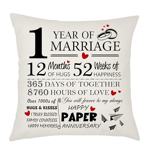1st Anniversary Cushion Cover Gift for Wife Husband Pillow Case 1st Weddding Anniversary Keepsake Present 1 Year of Marriage Gift Papper anniversary Cushion Cover 45x45cm (1 Year of Marriage)