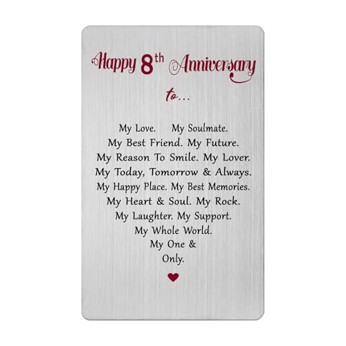 8 Year Anniversary Card for Men Women Him Her- Romantic 8th Wedding Anniversary Keepsake Gift for Husband Wife