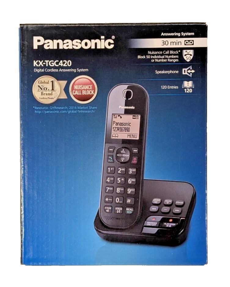 Panasonic KX-TGC420EB Cordless Phone Answer Machine Call Block Black New