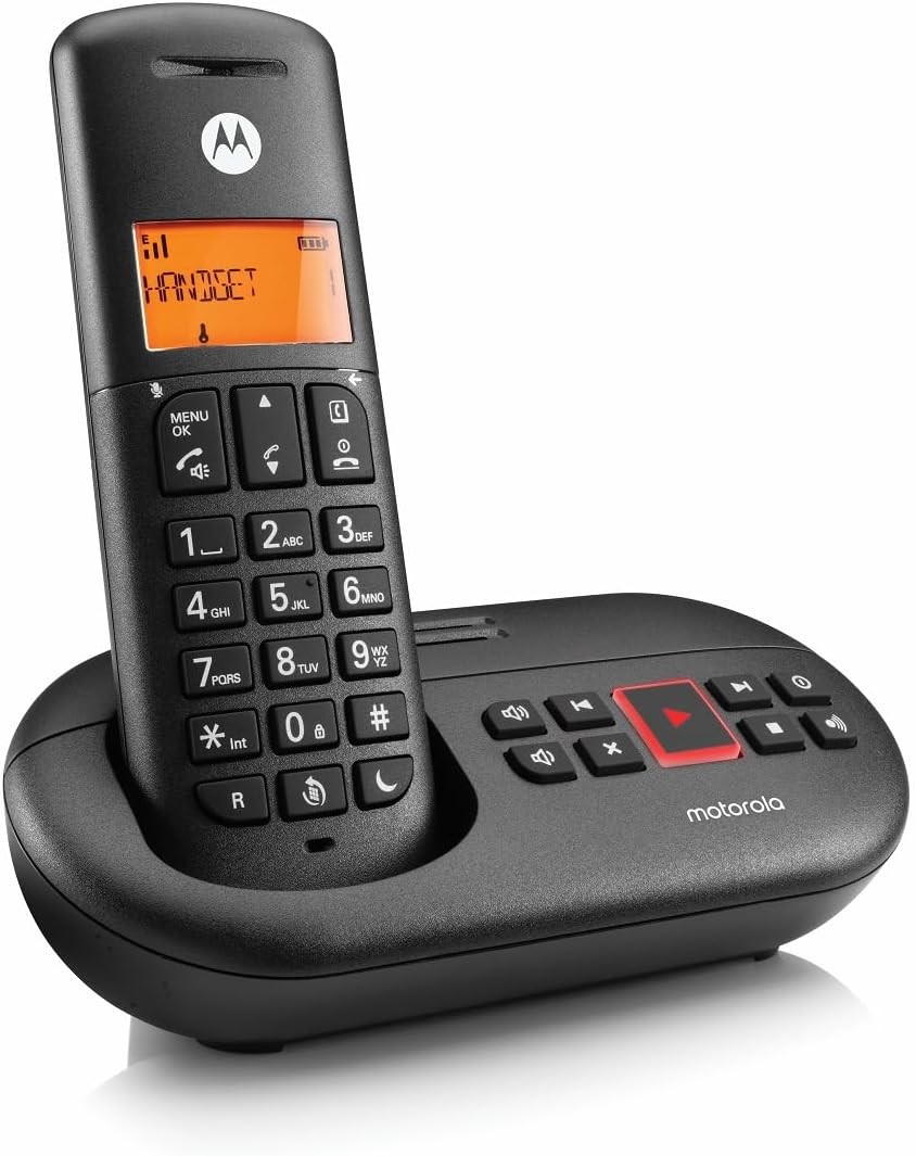 Motorola E211 Cordless Landline House Phone, Home Phone, Answer Machine, Nuisance Call Blocking, Do Not Disturb Button, Amber Backlit Display, Single Handset Pack