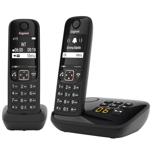Gigaset A694 AM DUO - Two Cordless DECT Telephones with an Answering Machine - Large Phonebook - Intuitive Use, Black [UK Version]