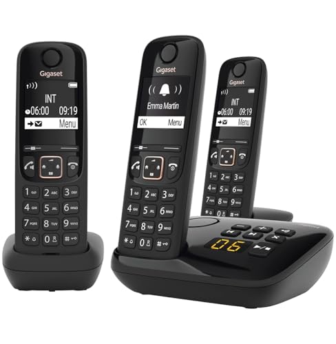 Gigaset A694 AM TRIO - Three Cordless DECT Telephones with an Answering Machine - Large Phonebook - Intuitive Use, Black [UK Version]