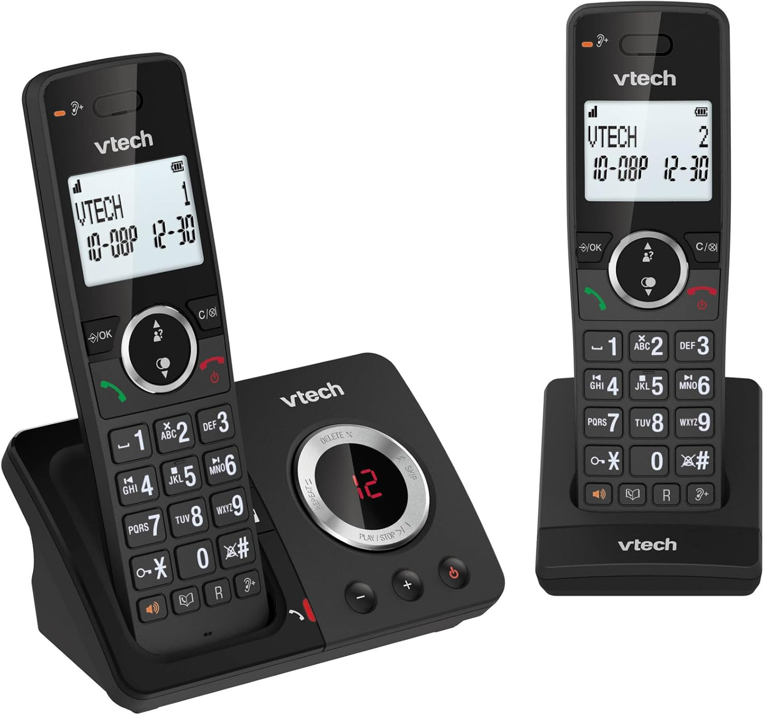 VTech ES2051 DECT Cordless Phone with Answering Machine,Call Block,Easy-to-Read Backlit Display,Landline Phone with 18 Hours Talk-time,Volume Booster,Handsfree Speakerphone,Speed Dial,Twin Handset
