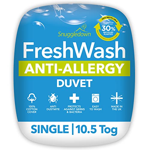 Snuggledown Freshwash Anti Allergy Single Duvet - 10.5 Tog All Year Round Quilt for Summer & Winter - Anti Bacterial, Soft Cotton Cover, Hypoallergenic, Machine Washable, Size (135cm x 200cm)
