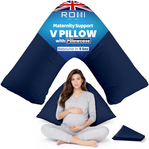 Rohi Orthopaedic V Pillow with Pillowcase – Anti Allergy Triangle pillows for Adults, Nursing, Maternity & Pregnancy – Extra Hollowfibre Cushioning to Supports Neck, Head & Back (Navy)