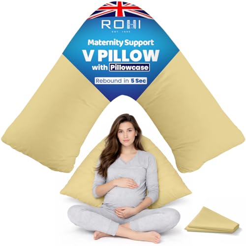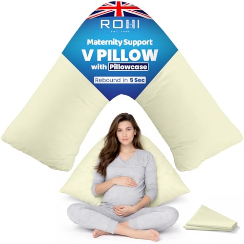 Rohi Orthopaedic V Pillow with Pillowcase – Anti Allergy Triangle pillows for Adults, Nursing, Maternity & Pregnancy – Extra Hollowfibre Cushioning to Supports Neck, Head & Back (Cream)
