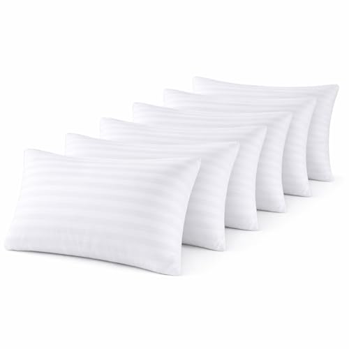 Lifestyle comfort ltd LSC Stripe Pillows 6 Pack Hotel Quality Bed Pillows Soft Hollow Fibre Filled Anti-Allergy Bounce Back Pillows Hypoallergenic Support for Back Neck & Shoulder Pain (PACK OF 6)