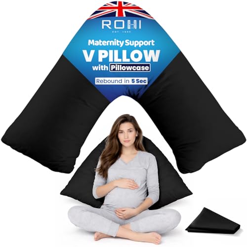 Rohi Orthopaedic V Pillow with Pillowcase – Anti Allergy Triangle pillows for Adults, Nursing, Maternity & Pregnancy – Extra Hollowfibre Cushioning to Supports Neck, Head & Back (Black)