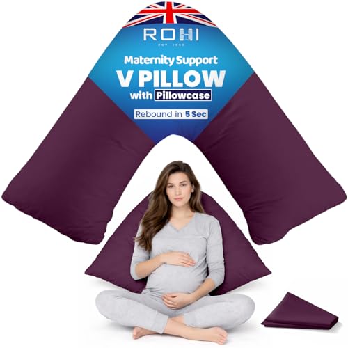 Rohi Orthopaedic V Pillow with Pillowcase – Anti Allergy Triangle pillows for Adults, Nursing, Maternity & Pregnancy – Extra Hollowfibre Cushioning to Supports Neck, Head & Back (Plum)
