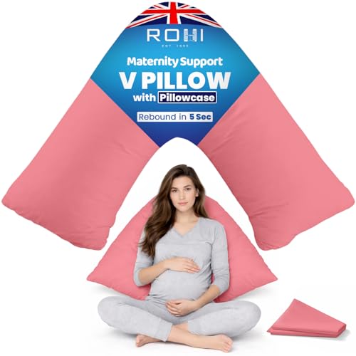 Rohi Orthopaedic V Pillow with Pillowcase – Anti Allergy Triangle pillows for Adults, Nursing, Maternity & Pregnancy – Extra Hollowfibre Cushioning to Supports Neck, Head & Back (Baby Pink)