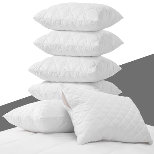 Pillow Protectors 6 Pack Cover White, Anti Allergy Zipped Pillows Protector, Quilted Pillow Case, Machine Washable, Dust & Mite Proof - 50 x 75cm
