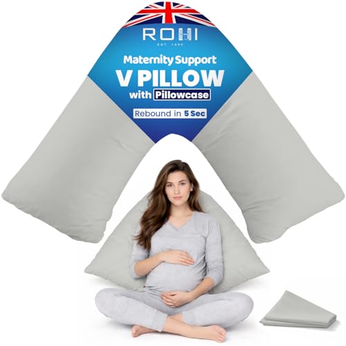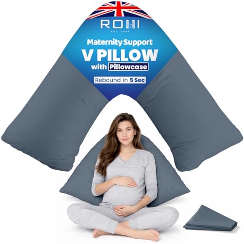 Rohi Orthopaedic V Pillow with Pillowcase – Anti Allergy Triangle pillows for Adults, Nursing, Maternity & Pregnancy – Extra Hollowfibre Cushioning to Supports Neck, Head & Back (Grey)