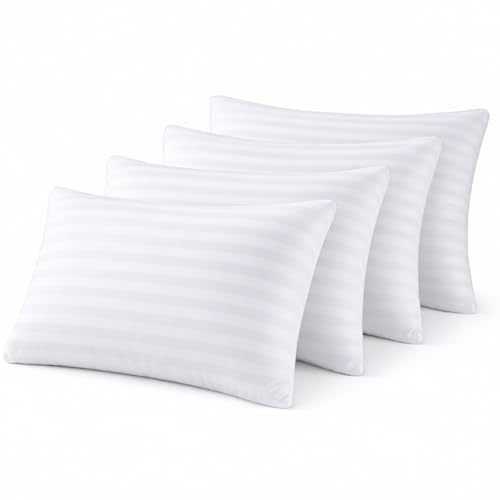 Lifestyle comfort ltd LSC Stripe Pillows 4 Pack Hotel Quality Bed Pillows Soft Hollow Fibre Filled Anti-Allergy Bounce Back Pillows Hypoallergenic Support for Back Neck & Shoulder Pain(PACK OF 4)