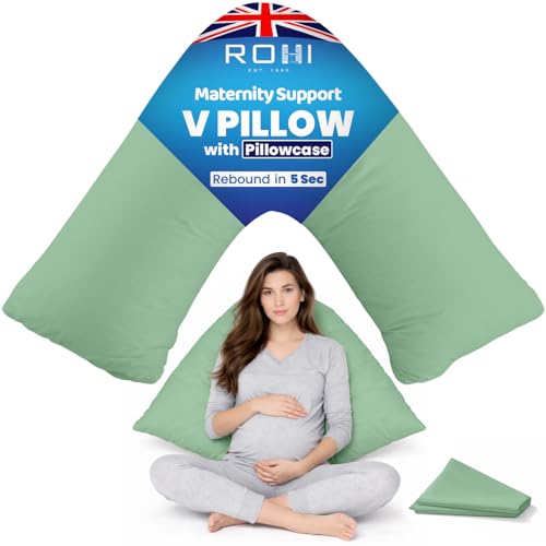Rohi Orthopaedic V Pillow with Pillowcase – Anti Allergy Triangle pillows for Adults, Nursing, Maternity & Pregnancy – Extra Hollowfibre Cushioning to Supports Neck, Head & Back (Duck Egg)