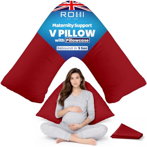 Rohi Orthopaedic V Pillow with Pillowcase – Anti Allergy Triangle pillows for Adults, Nursing, Maternity & Pregnancy – Extra Hollowfibre Cushioning to Supports Neck, Head & Back (Red)