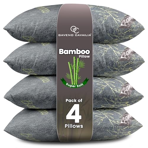 GC GAVENO CAVAILIA Luxury Bamboo Memory Foam Pillows - 4 Pack Orthopedic Neck Support Bed Pillows, Fluffy & Supportive 45x70 cm, Breathable, Long Lasting, Anti Allergy Pillows, Charcoal
