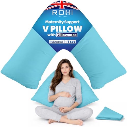 Rohi Orthopaedic V Pillow with Pillowcase – Anti Allergy Triangle pillows for Adults, Nursing, Maternity & Pregnancy – Extra Hollowfibre Cushioning to Supports Neck, Head & Back (Sky Blue)