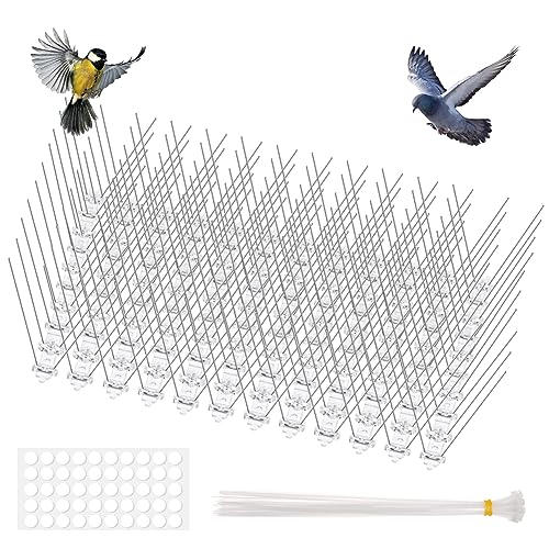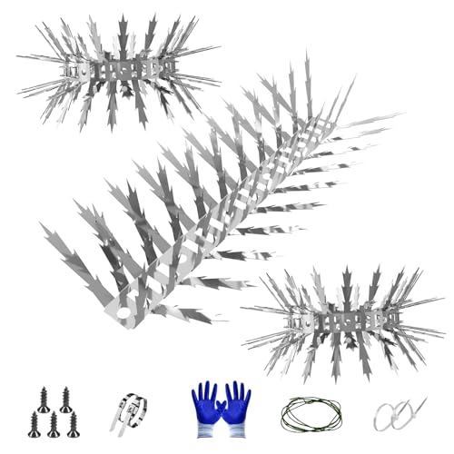 OFFCUP Bird Spikes for Pigeons, 12pcs Anti Bird Spikes, Stainless Steel Bird Spikes Pigeon Spikes for Roofs and Windows Bird Deterrent Repellent Spikes for Cats, Birds Control Defence Spikes (3M)