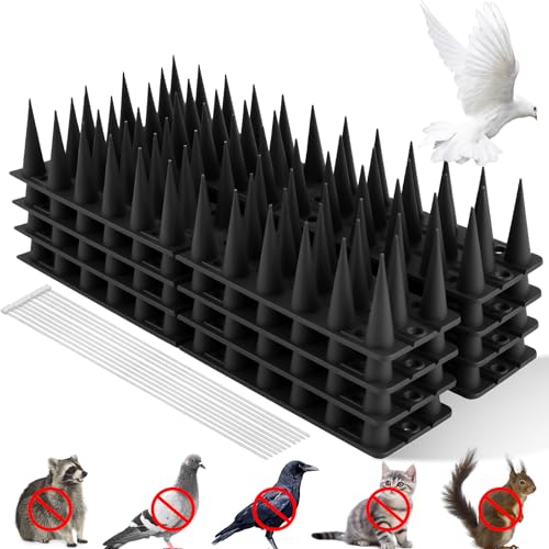 Apluskis Upgraded Bird Spikes, 20 Pack/6M Squirrel Raccoon Pigeon Cat Fox Animal Deterrent Fence Anti Bird Spikes for Outside/Outdoor to Keep Birds Away (Black)