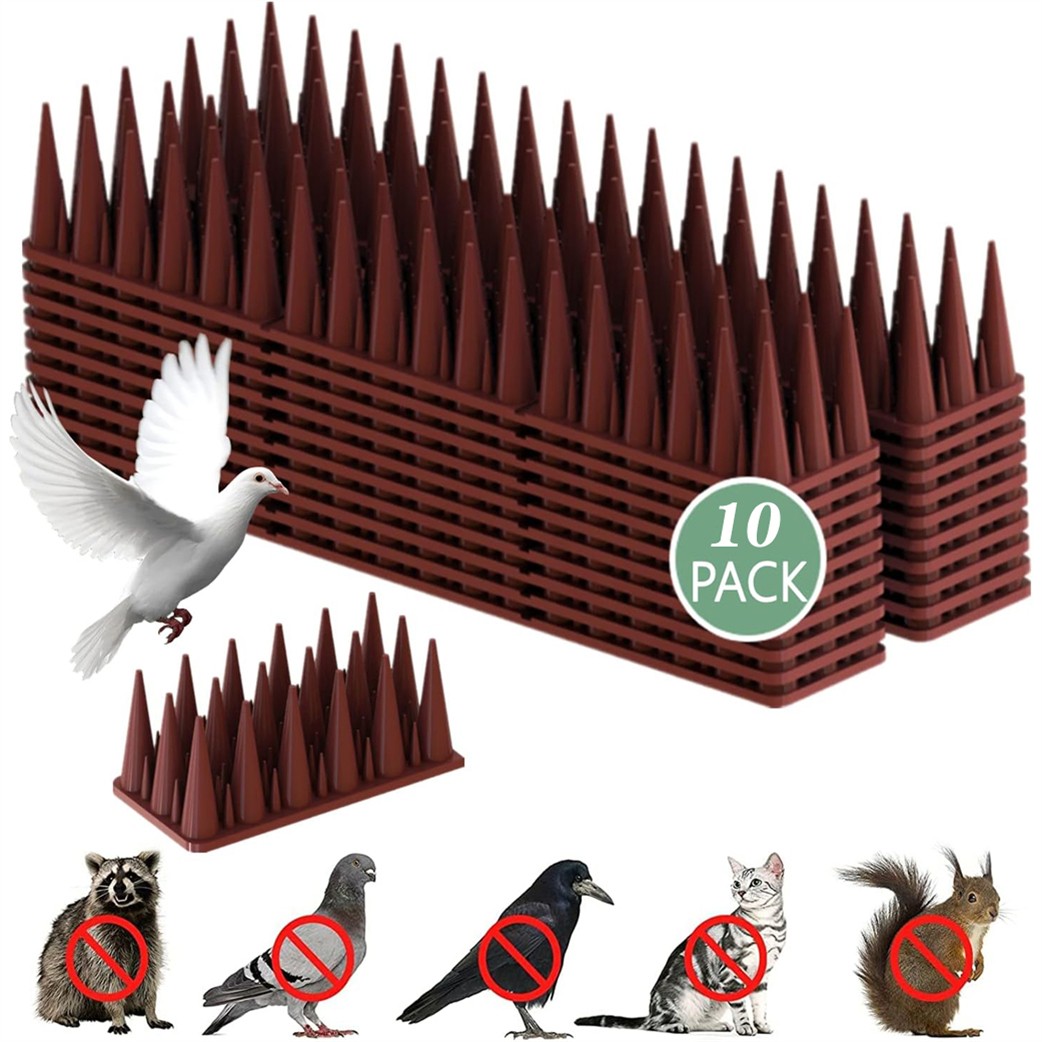 Apluskis Upgraded Pigeon Spikes,Garden Tall Bird Spikes Fence Wall Spikes Coverage between 3m to 6m,Bird Squirrel Pigeon Cat Fox Deterrent Spikes,10 Pack Anti Bird Spikes(Brown)