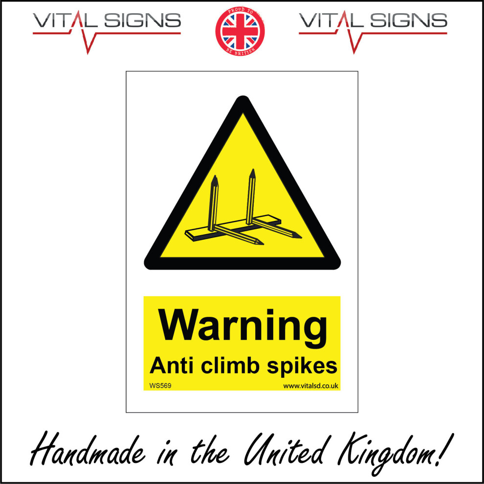 (150 x 200mm - 6 x 8, 1mm Pvc Foamex) WARNING ANTI CLIMB SPIKES SIGN WS569 SAFETY STICKER RIGID INDOOR OUTDOOR