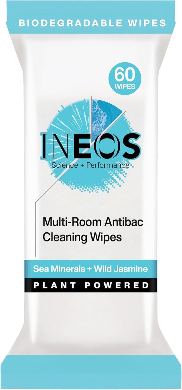 INEOS Next-Gen Antibac Multi-Room Disinfectant Biodegradable 60 Wipes, Sea Minerals + Wild Jasmine, Kills 99.9% of Bacteria + Viruses, Plant Powered, Packaging May Vary
