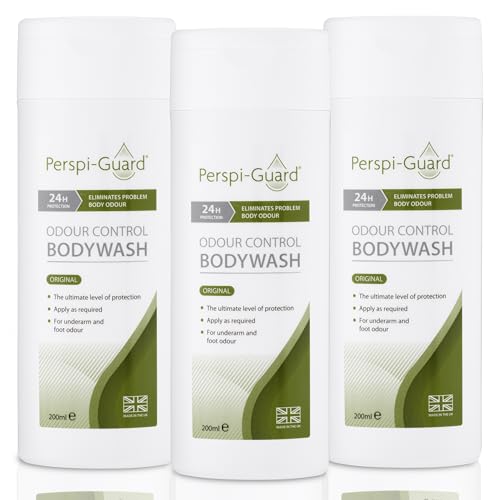 Perspi-Guard Odour Control Antibacterial Body Wash for Men & Women, Anti Bacterial Shower Gel Targets Body Odour for Lasting Protection, 200ml, 3-Pack