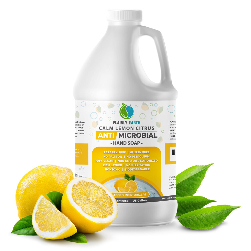 Plainly Earth Antimicrobial Liquid Hand Soap (64 Oz) - Antibacterial Soap Refill - Hand Soap Refill Bottle - Cruelty Free Moisturizing Soap Calm Lemo