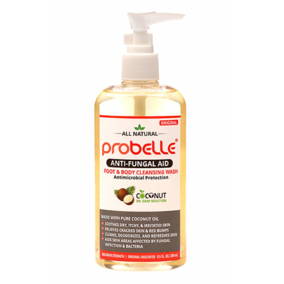 Probelle Antifungal Soap from Pure Coconut Oil with Antimicrobial Protection. Aids Skin Areas Affected 9.5 oz/ 280 mL