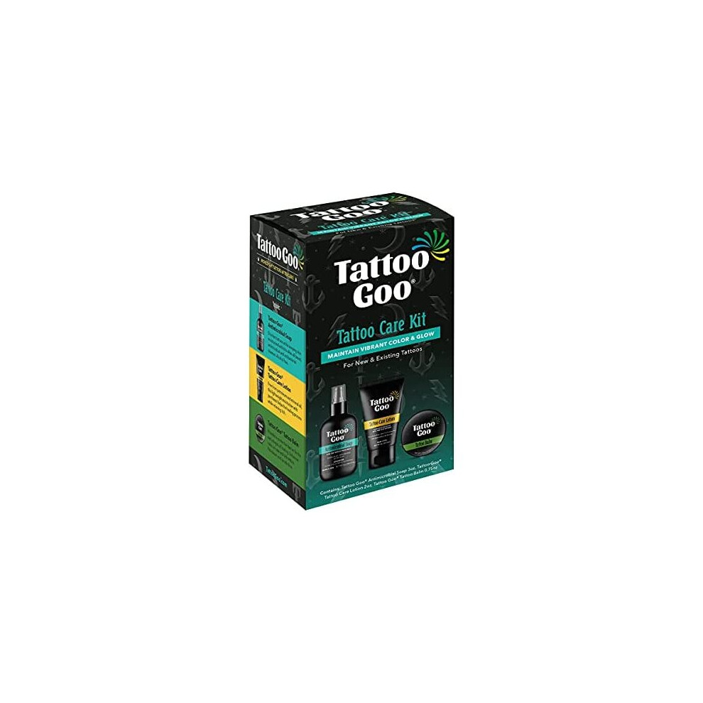Tattoo Goo Aftercare Kit Includes Antimicrobial Soap, Balm, and Lotion, Tattoo Care for Color Enhancement + Quick Healing - Vegan, Cruelty-Free,