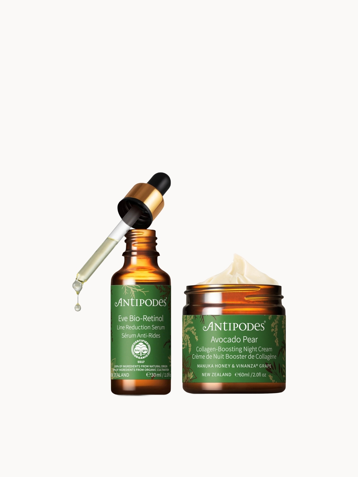 Antipodes Eve Bio-Retinol Line Reduction Serum 30ml, Avocado Pear Collagen-Boosting Night Cream 60ml Bundle
