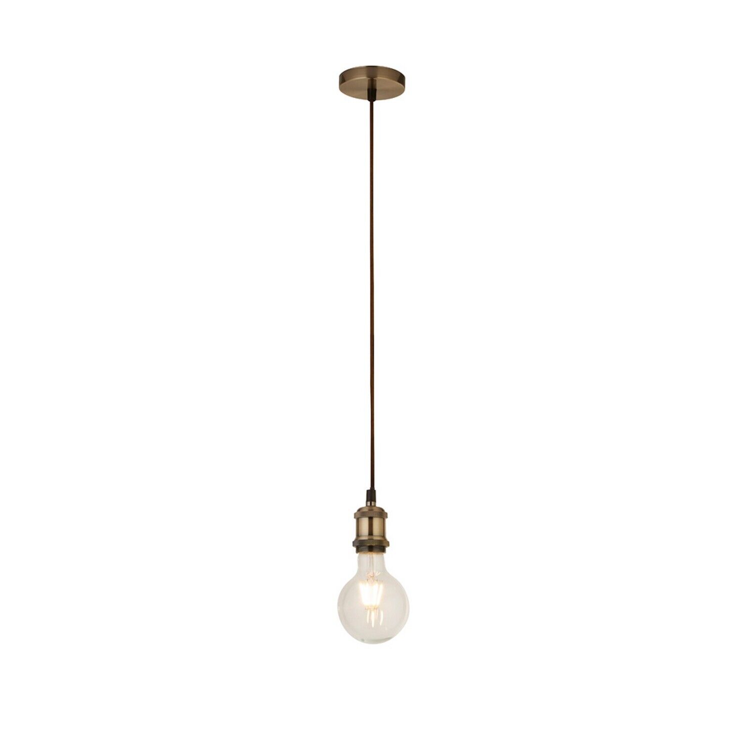 Antique Brass 1 Ceiling Pendant Light 1.5m Cable Suspension Brown Textile Cable