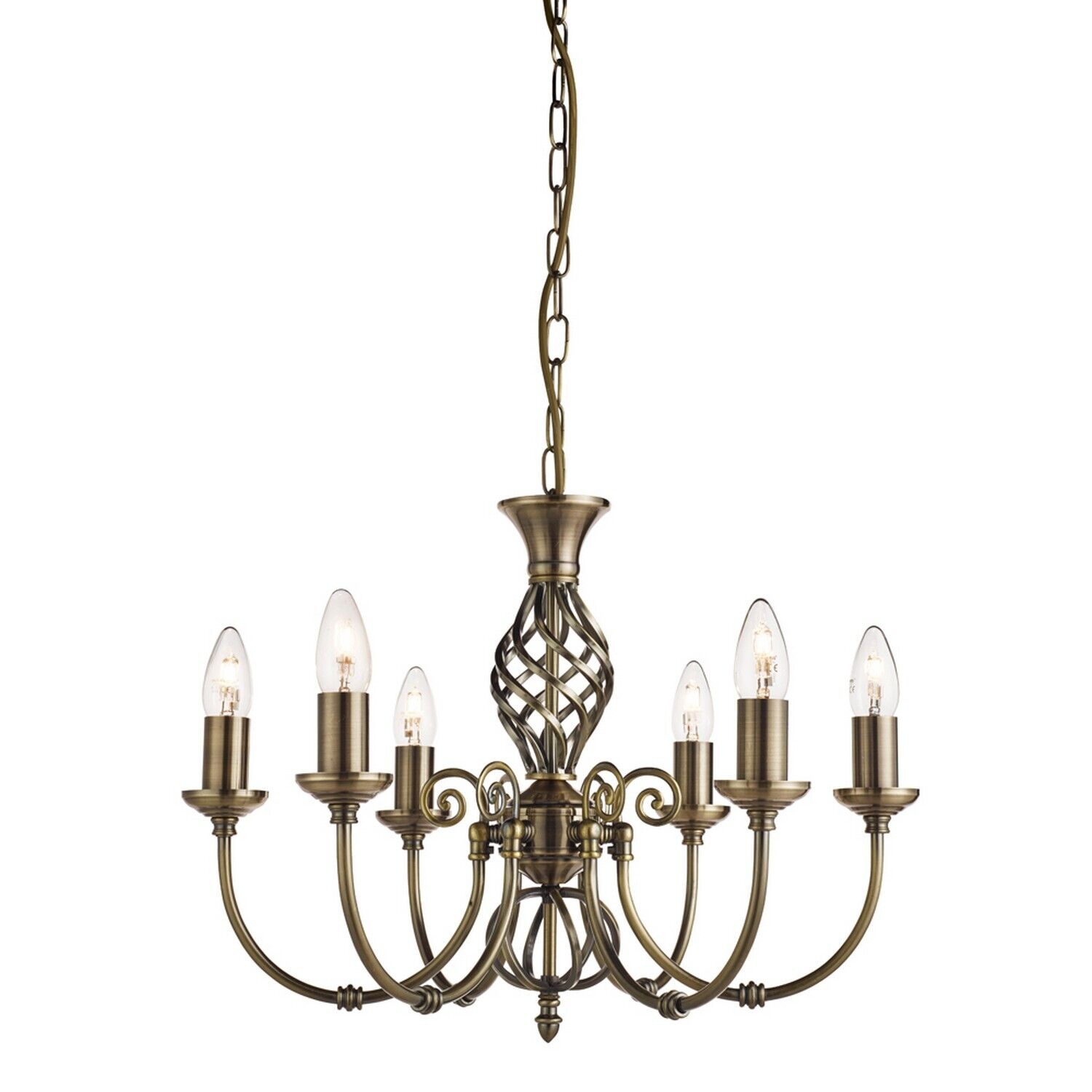 6 Lights Antique Brass Ceiling Fitting Pendant Light with Candle Style Holders