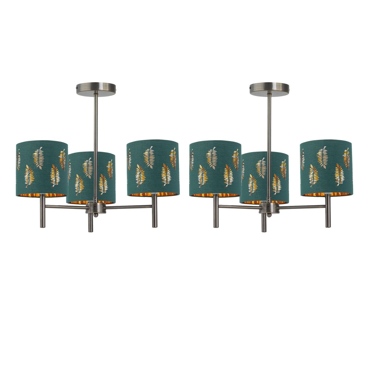 Set of 2 Modern Antique Brass Ceiling Light Fittings with Dark Green Fern Shades