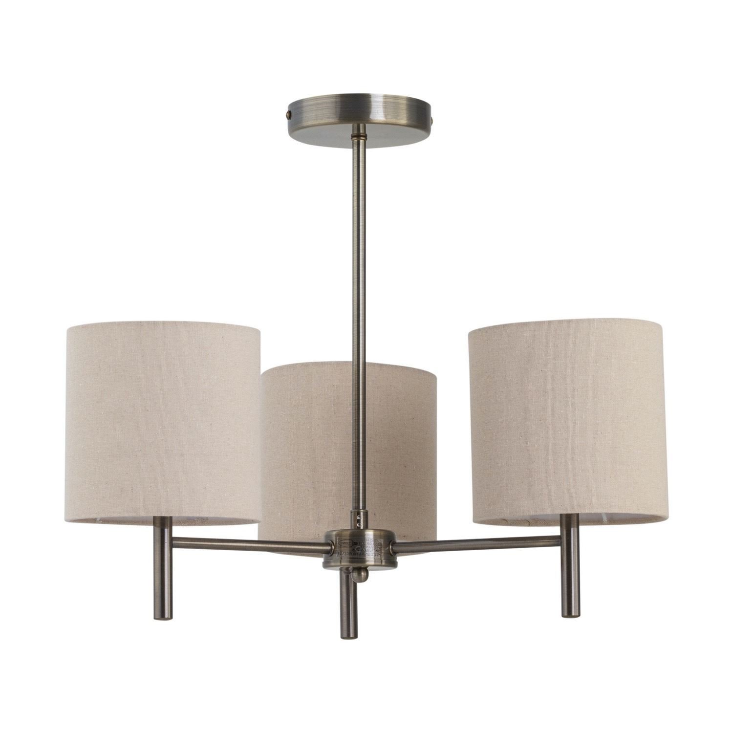 Modern Antique Brass Ceiling Light Fitting Semi Flush Natural Linen Shades
