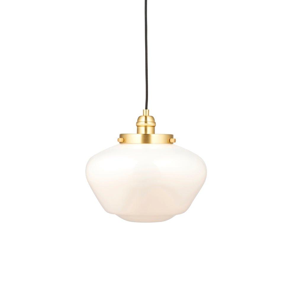 Antique Brass Ceiling Pendant Light - Opal Glass Shade - Single Bulb Fitting