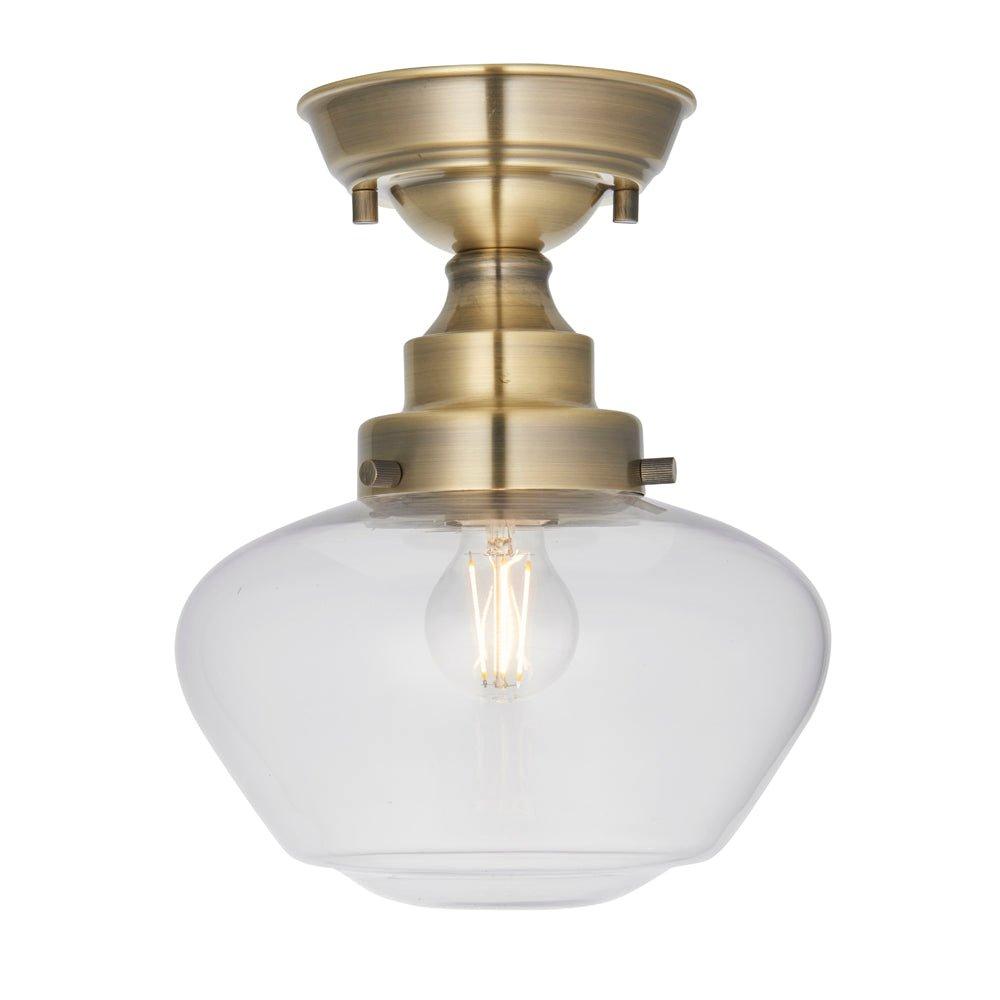 Antique Brass Semi Flush Ceiling Light Fitting & Clear Glass Shade Low Profile