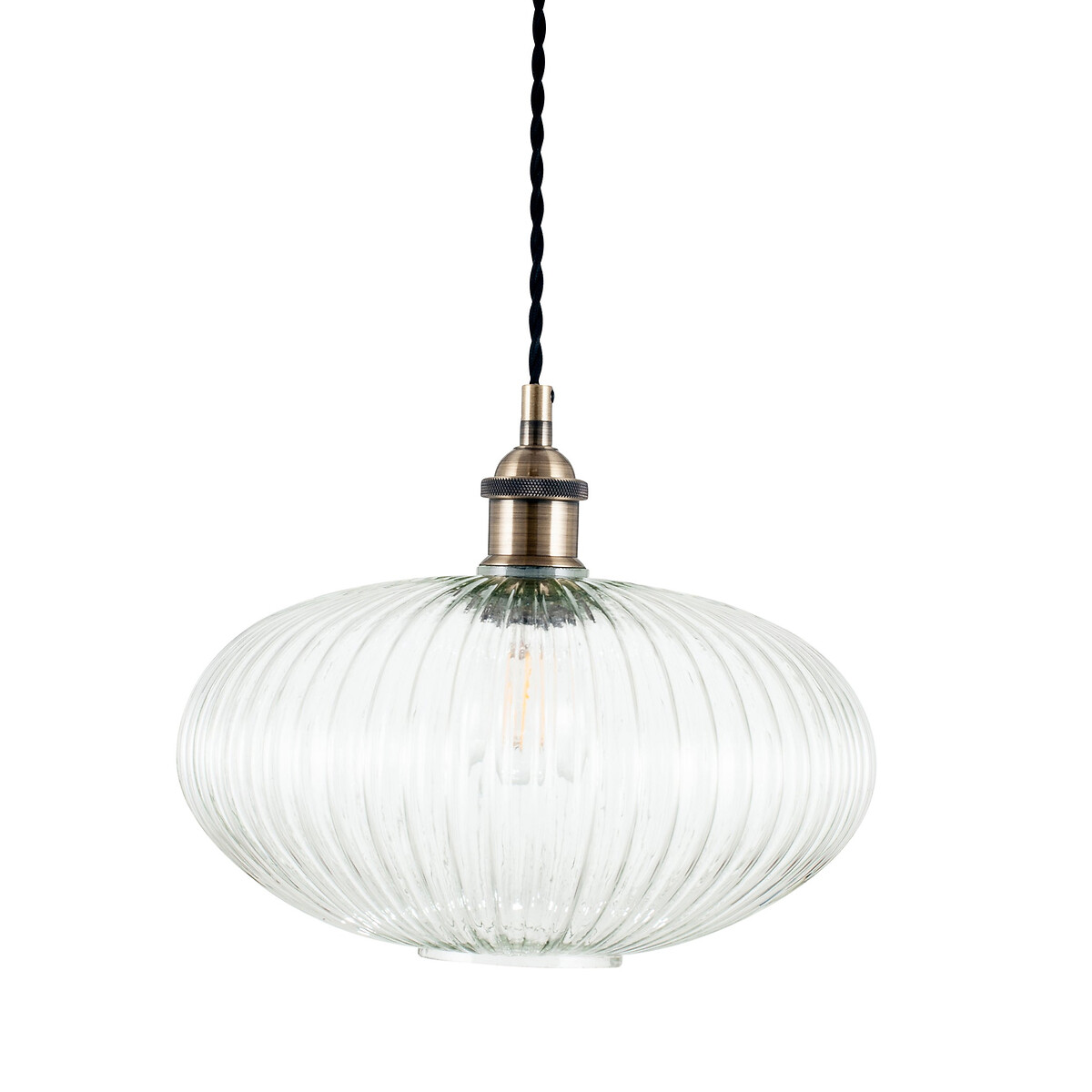 Clear Ribbed Glass with Antique Brass Oval Pendant Ceiling Light