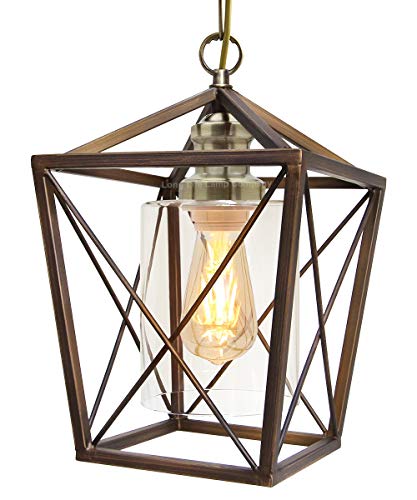 Long Life Lamp Company Antique Brass Lantern Ceiling Pendant Light Rectangular Box Frame with Clear Glass Shade Vintage M0200F