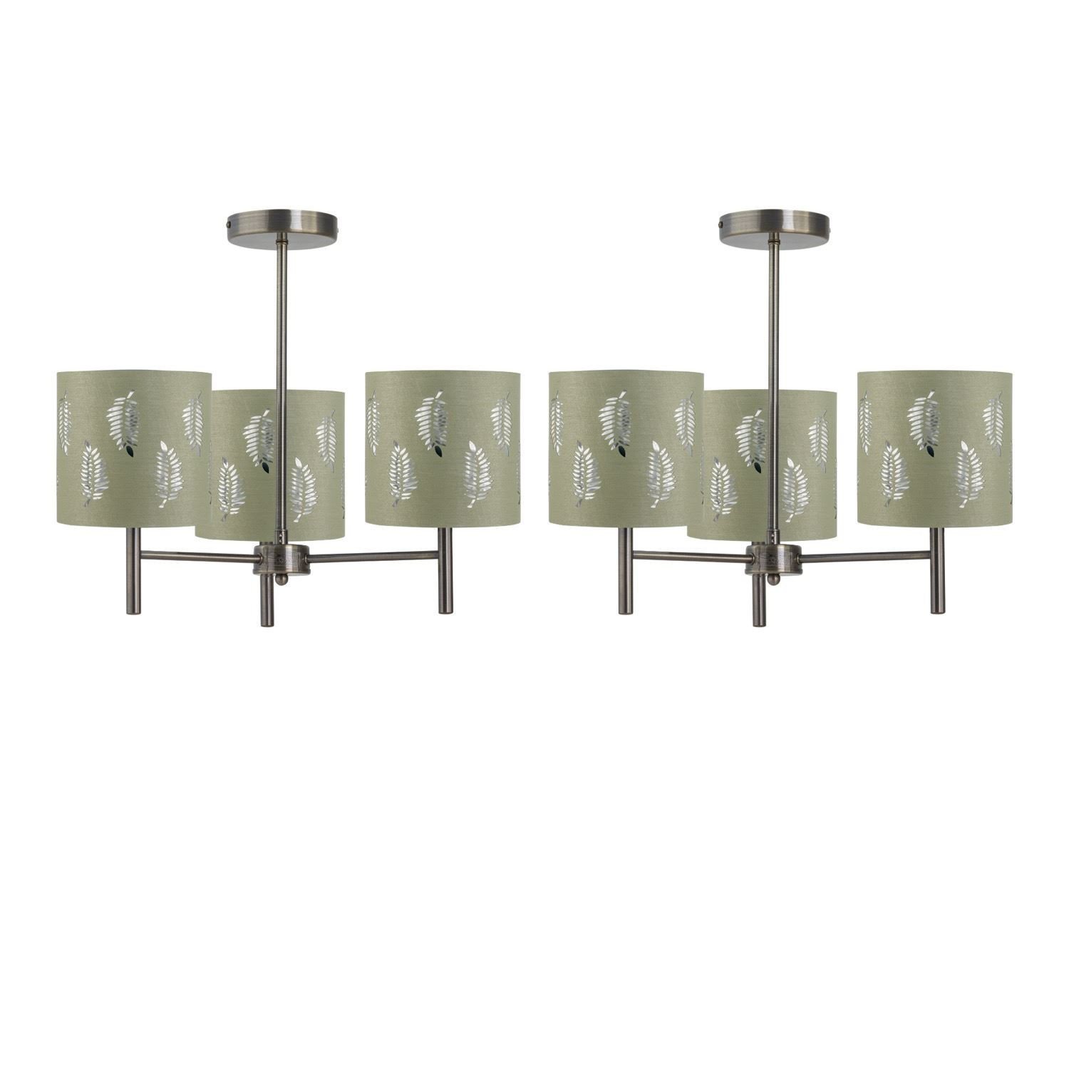 Set of 2 Modern Antique Brass Ceiling Light Fittings with Sage Green Fern Shades
