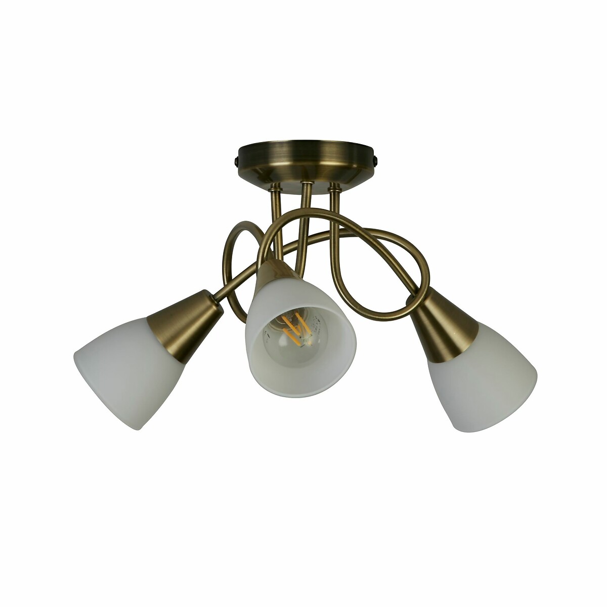 Antique Brass Semi Flush Ceiling Light & Confetti Glass Shades - Multi Arm Lamp