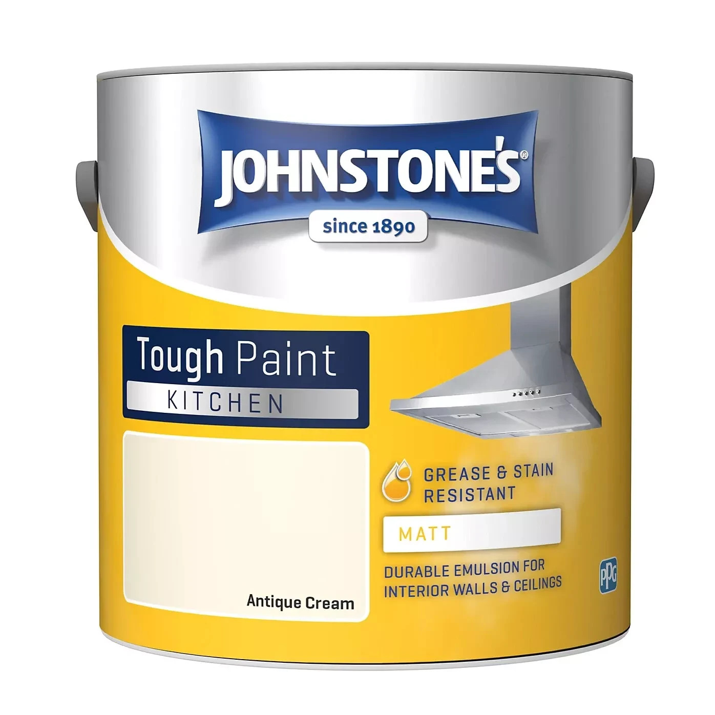 Johnstones Kitchen Tough Emulsion Paint Matt Grease Resistant Antique Cream 2.5L