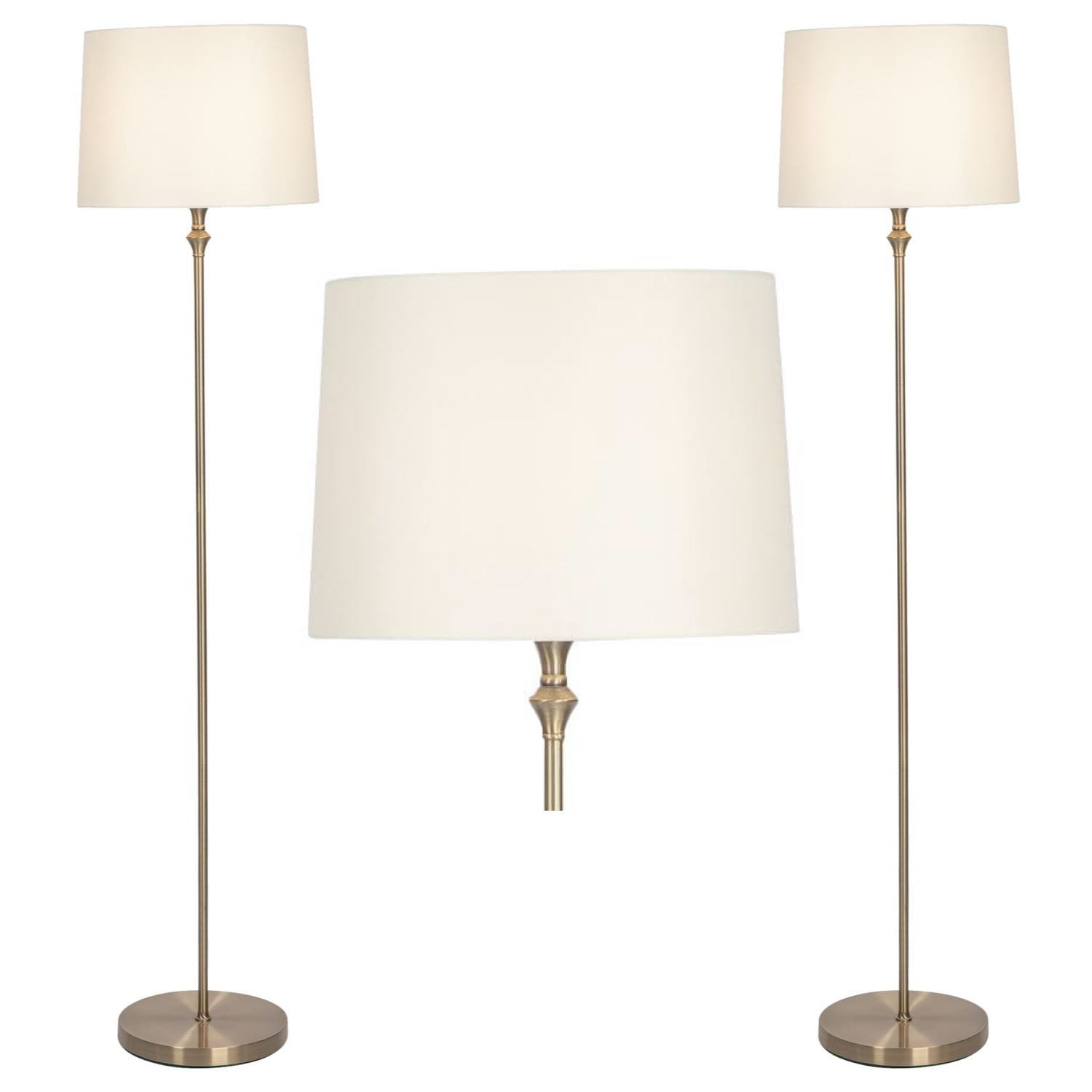 Set of 2 Antique Brass Floor Lamps Standard Lights with Cream Shades