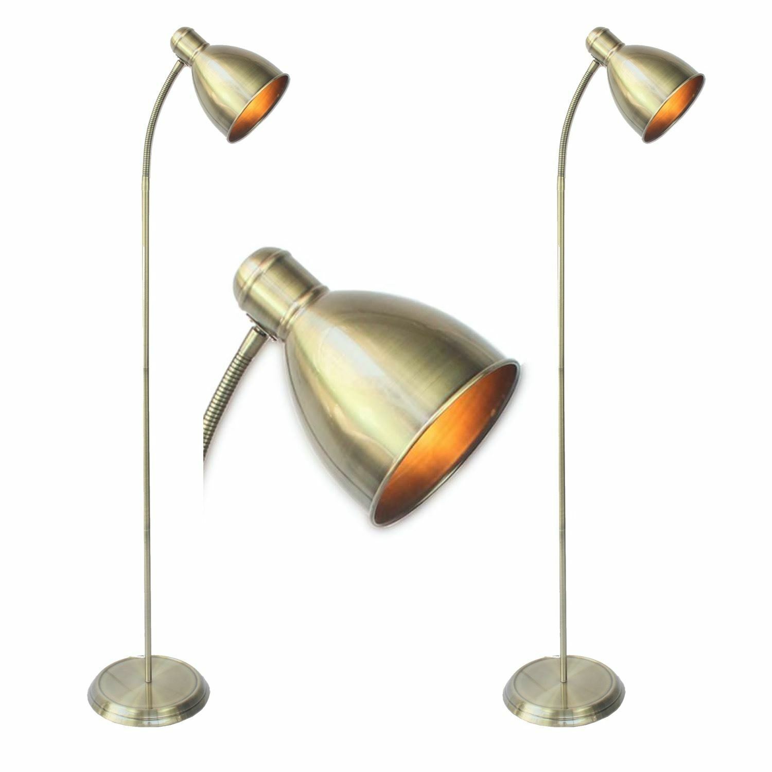 Set of 2 Antique Brass Flexi Arm Reading Floor Light Standing Lamps