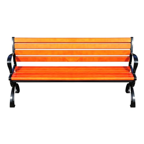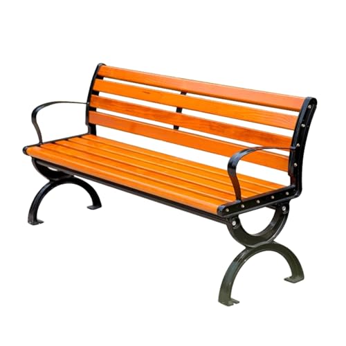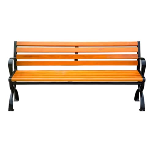 YUNHEST All-weather Outdoor Antiseptic Wood Park Chair Durable Load-bearing Strong Iron Back Seat With Armrests Leisure Public Rest Bench(59.06 * 20.08in)