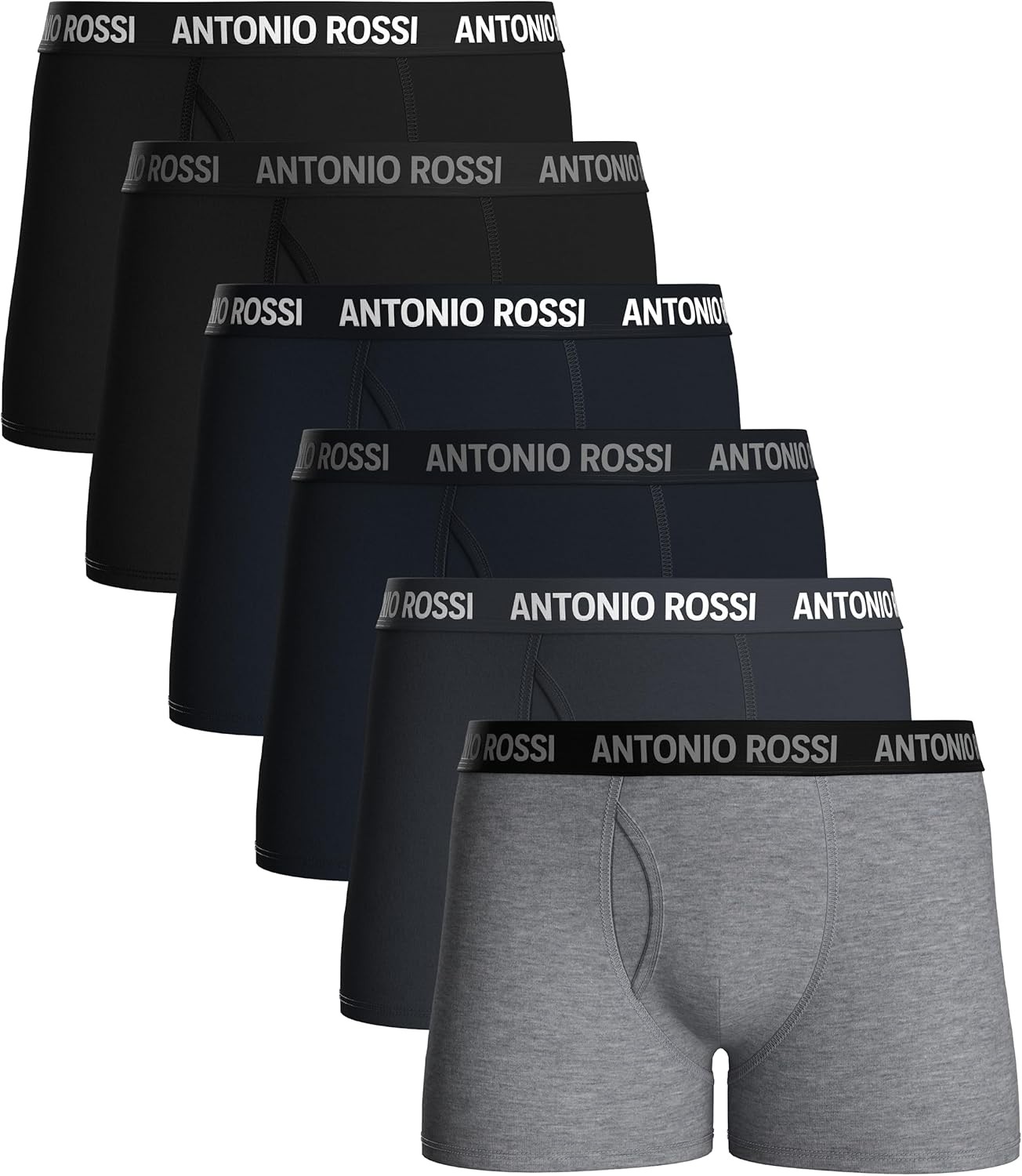 ANTONIO ROSSI (6 Pack Mens Boxers Shorts Open Fly - Keyhole Trunks Fitted Boxer - Super Soft Cotton, No Itchy Labels, Breathable, Moisture Wicking - Men's Underwear Multipack