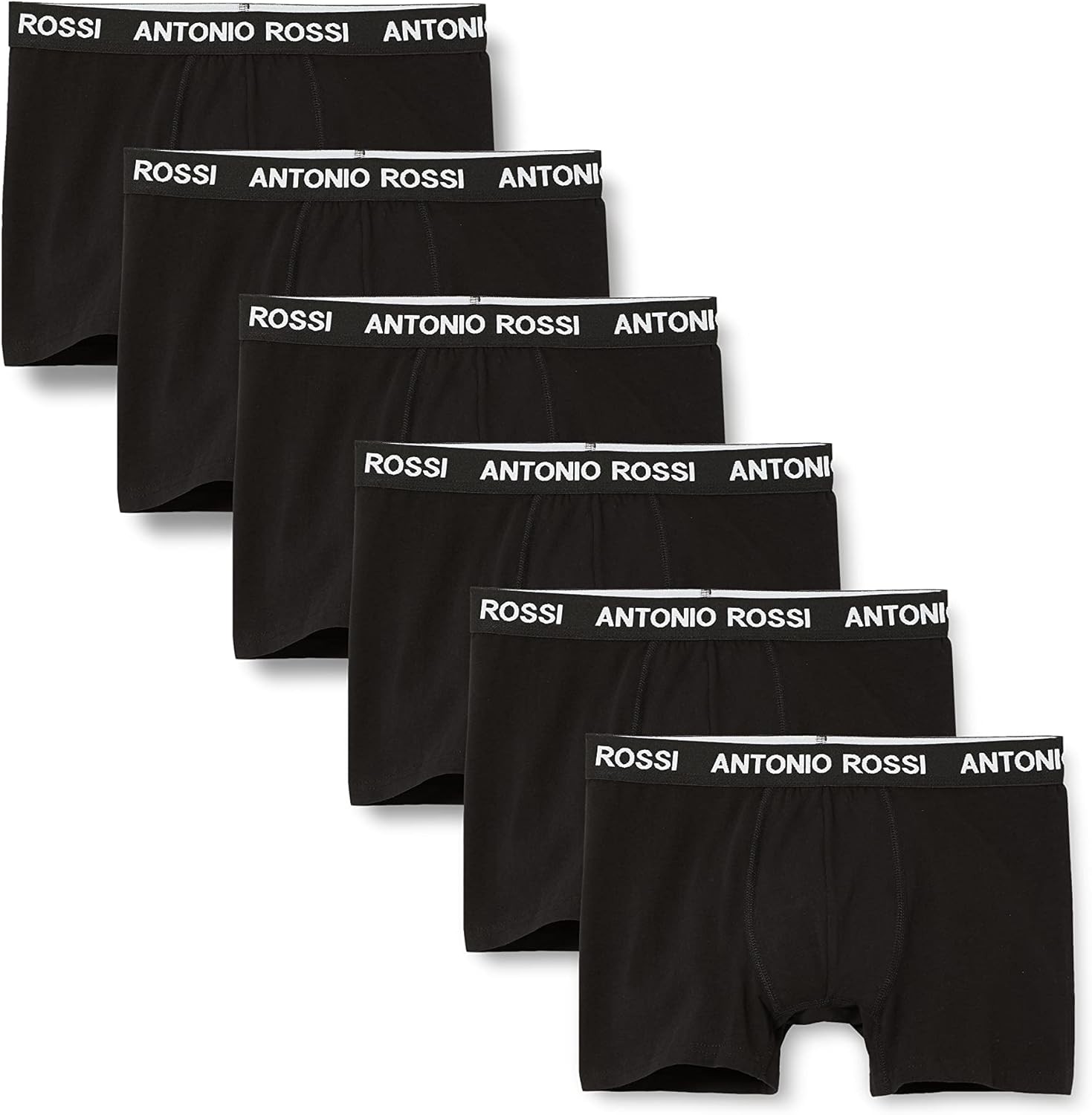 ANTONIO ROSSI (3/6 Pack) Men's Fitted Boxer Hipsters - Mens Boxers Shorts Multipack with Elastic Waistband - Cotton Rich, Comfortable Mens Underwear, Black (6 Pack), S