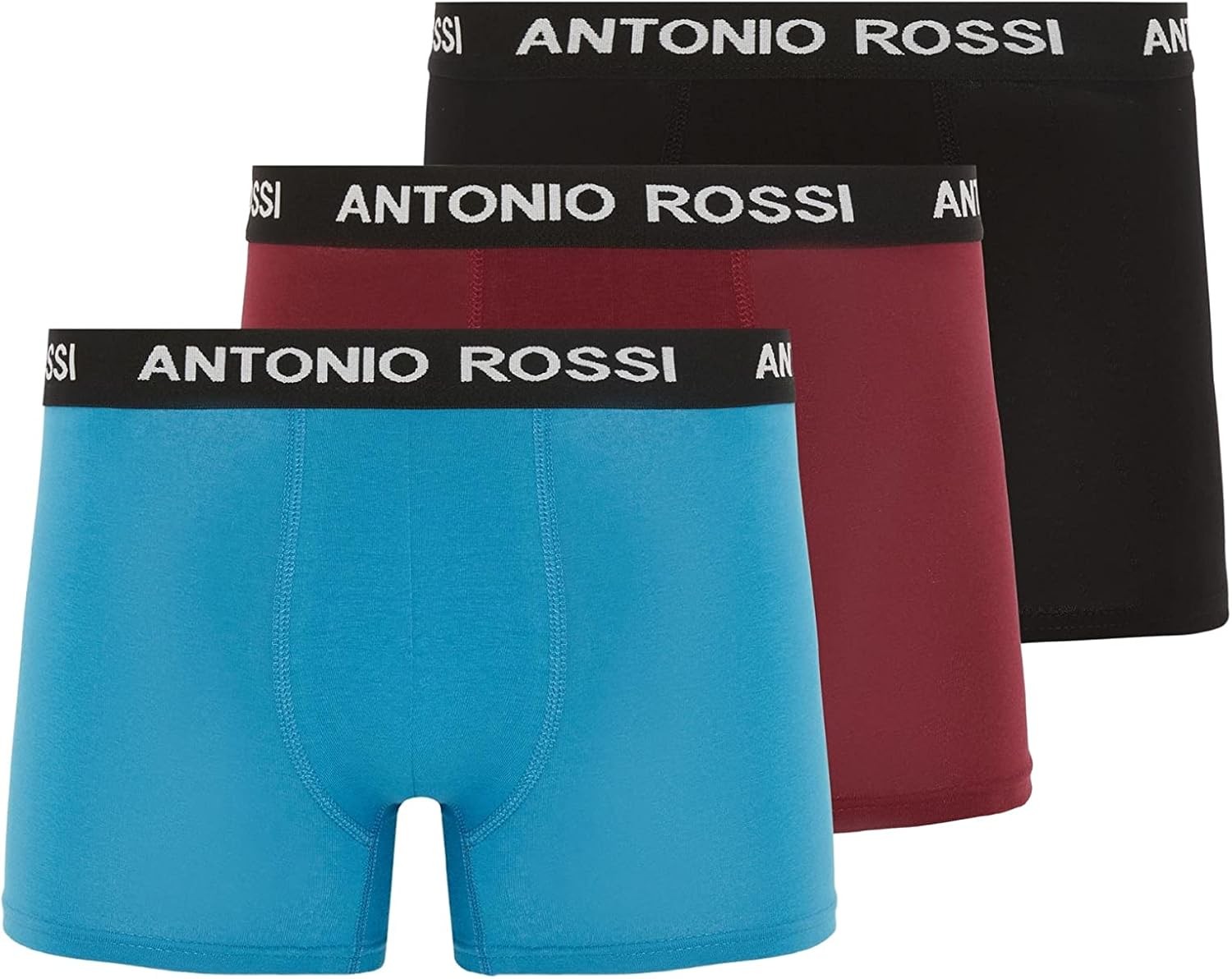 ANTONIO ROSSI (3/6 Pack) Men's Fitted Boxer Hipsters - Mens Boxers Shorts Multipack with Elastic Waistband - Cotton Rich, Comfortable Mens Underwear, Black, Blue, Burgundy (3 Pack), S